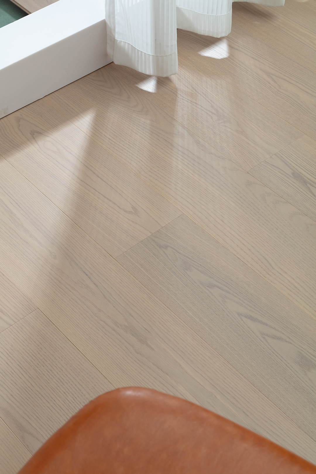北美白蜡木,硬度高(詹卡硬度约1320),耐磨抗冲击,粗犷山形纹理,浅黄底色,适配现代简约风格。全桦木多层结构,稳定性极佳,有效抵抗温湿变化,降低变形风险,特别适合地暖环境。